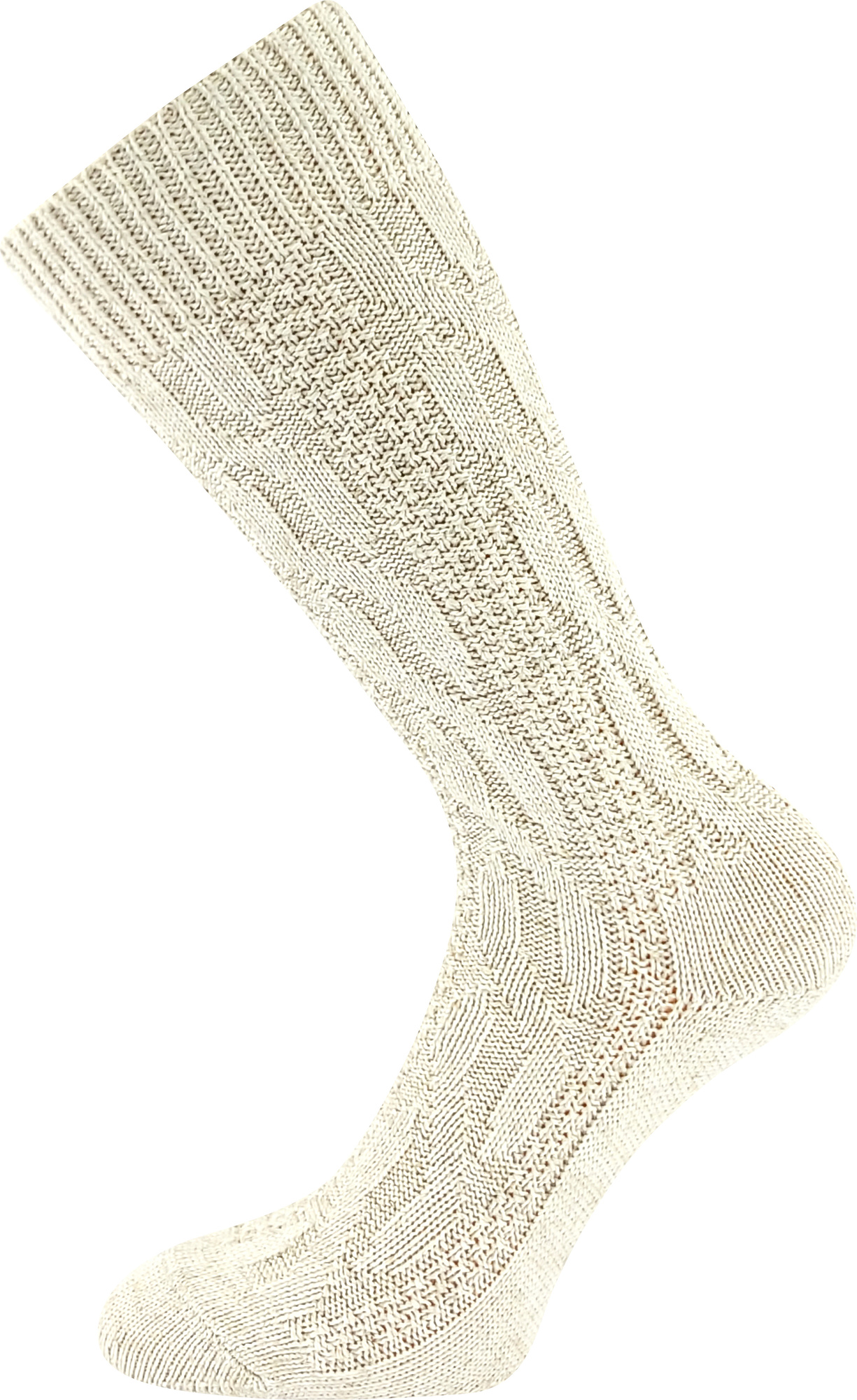 Dámské a pánské silné ponožky Boma® LINEX jsou klasické, hrubě pletené ponožky z retro vzorované pleteniny. Díky přírodním materiálům bavlna a lnu jsou ponožky příjemné na omak a zároveň mají ideální termoregulační vlastnosti, udrží nohy v teple. Lněné ponožky jsou vysoce prodyšné, mají komfotní, volný nestahující lem.
