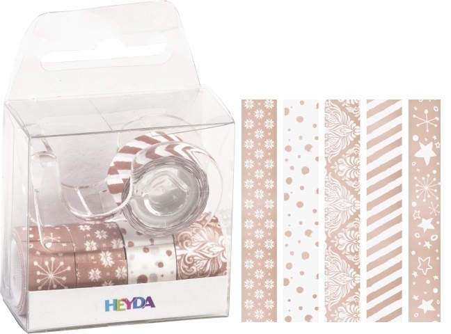 Páska lepicí papírová se používá ke kreativním účelům. Můžete s ní ozdobit různé výrobky při tvoření - kětináče, vázy, svícny, stojánky. Dozdobení různých deníků, zápisníků, památníků... Součástí je i odvíječ pásky. Motiv: bílá/měděná číst celé