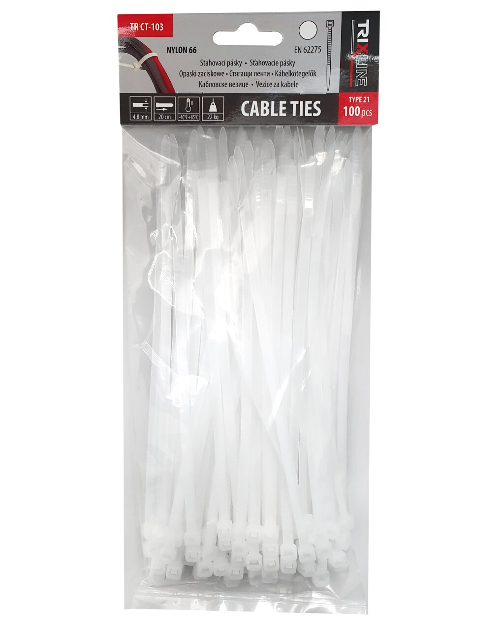 Stahovací pásky TR CT-103 200x4,8mm, bílé TRIXLINE, 100ks