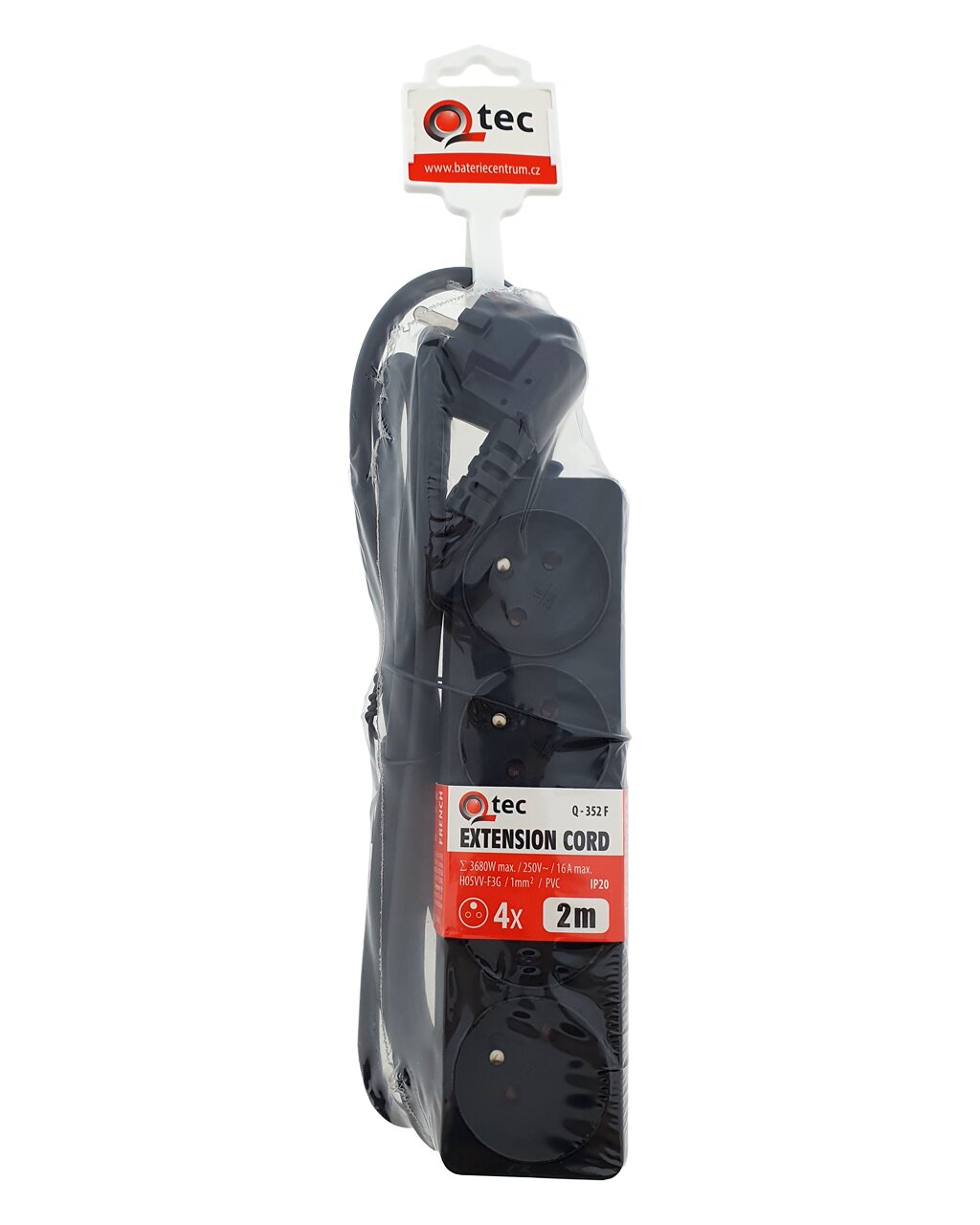 Prodlužovací přívod černý 4 zásuvky, 2m, Q-352F QTEC