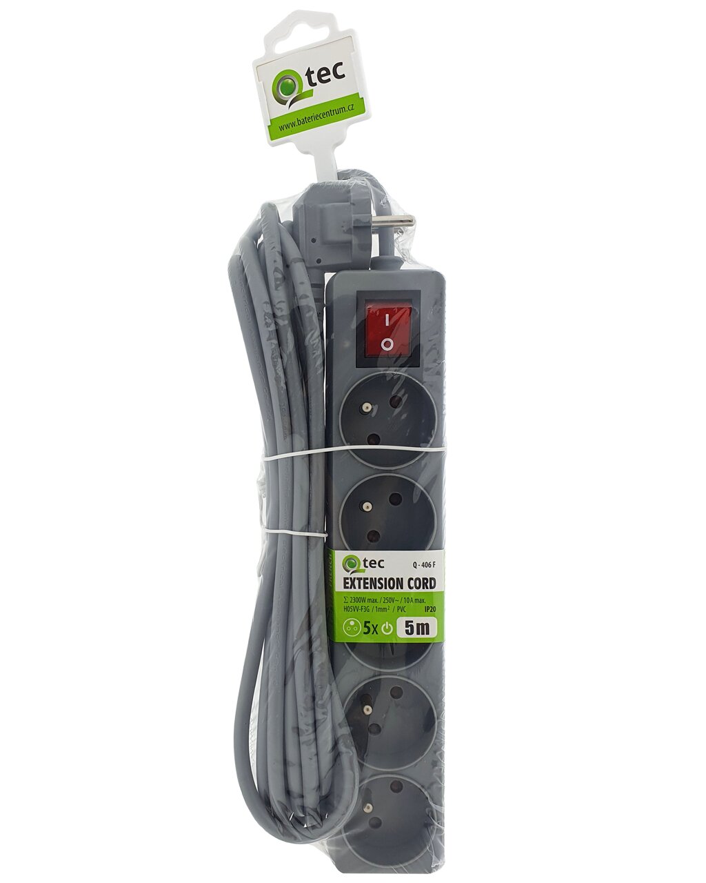 Prodlužovací přívod šedý 5 zásuvek s vypínačem, 5m, Q-406F QTEC