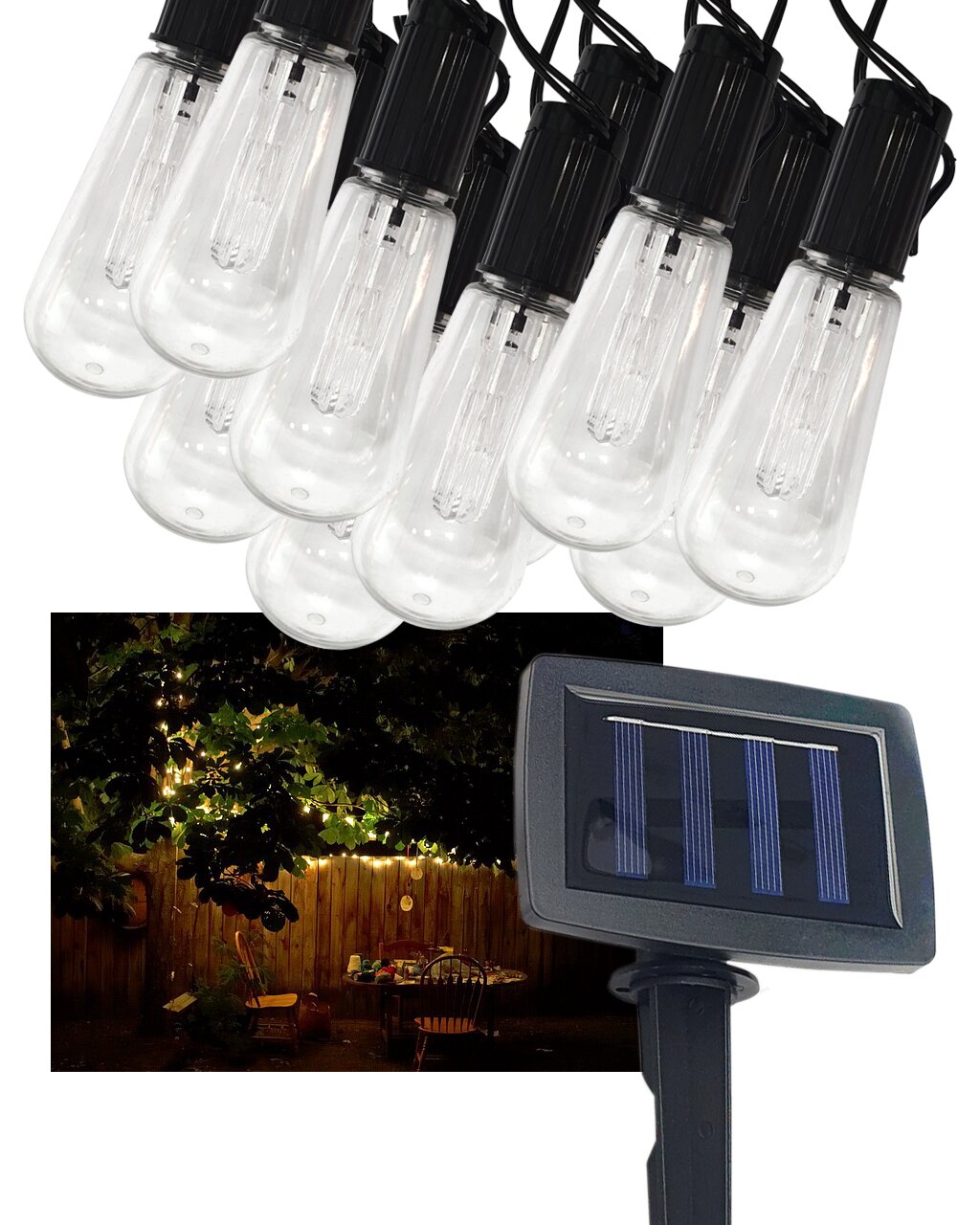 Dekorativní LED solární, venkovní osvětlení (řetěz/girlanda) TR-591 Trixline. Vytváří příjemnou atmosféru zahrady, pergoly, altánku, terasy, balkónu apod. Lze volně položit na stoly, parapety, police nebo zavěsit na zábradlí, ploty, slunečníky, stromy, sloupy, omotat na trámy nebo prověsy u stropu či volně do prostoru. Černý kabel o délce 2m je tvořen 10ti LED plastovými, podlouhlými, průhlednými žárovkami, vyzařují teplou barvu světla. Výhodou plastových žárovek oproti skleněným je jejich nerozbitnost, odolnost, nízká hmotnost a delší životnost. Díky solárnímu panelu ušetříte energii a nejste omezeni připojením do elektrické sítě. Ve dne se nabíjí a v noci rozsvítí. Má volitelné 2 režimy svícení (S) stabilní a (F) blikající.