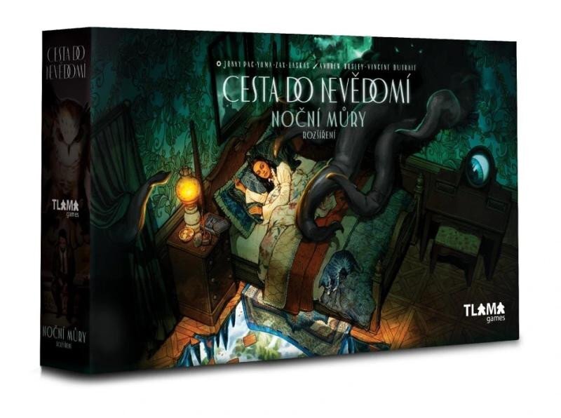 Rozšíření Noční můry přidává do Cesty do nevědomí mnoho nových zvratů, například sestavu prazvláštních klientů, pojednání mrtvých, a samozřejmě celou plejádu nočních můr. Ale kromě nových překážek budete mít k dispozici také nové nástroje, které vám pomohou se s překážkami vypořádat, jako je prasklá destička, která dostane vaše porozumění na zcela novou úroveň. Ale mějte se na pozoru: čím hlouběji se ponoříte do temnoty mysli, tím více riskujete, že propadnete šílenství... Naštěstí má toto rozšíření také světlou stránku. Na pomoc vám přispěchají vaši mazlíčci, kteří vám poskytnou emocionální oporu, možnost, jak se zbavit šílenství a příležitost k efektivnějšímu léčení klientů. Také s jejich pomocí lépe ovládnete pohyb kalamáře - můžete jeho kroky rozdělit mezi rondel a úrovně mazlíčka. Toto rozšíření je určeno pro 1-4 hráče od 12 let. Pravidla jsou česky. Herní materiál je jazykově nezávislý. Rozšíření obsahuje: 21 karet nočních můr 6 karet prazvláštních rutinních klientů 4 karty prazvláštních klientů s vážným případem 12 vrstev melancholie s proměnou 12 víceúčelových karet výzkumu 1 pojednání mrtvých 1 destička prokletého cíle lokace 4 prasklé desky porozumění 6 temných žetonů porozumění 6 počátečních destiček šílených poznámek 28 žetonů šílenství 1 přehledová karta šílenství 1 žeton kontroly šílenství 4 figurky mazlíčků 4 destičky mazlíčků 1 figurka gramofonu 1 přehledová karta gramofonu 1 pravidla