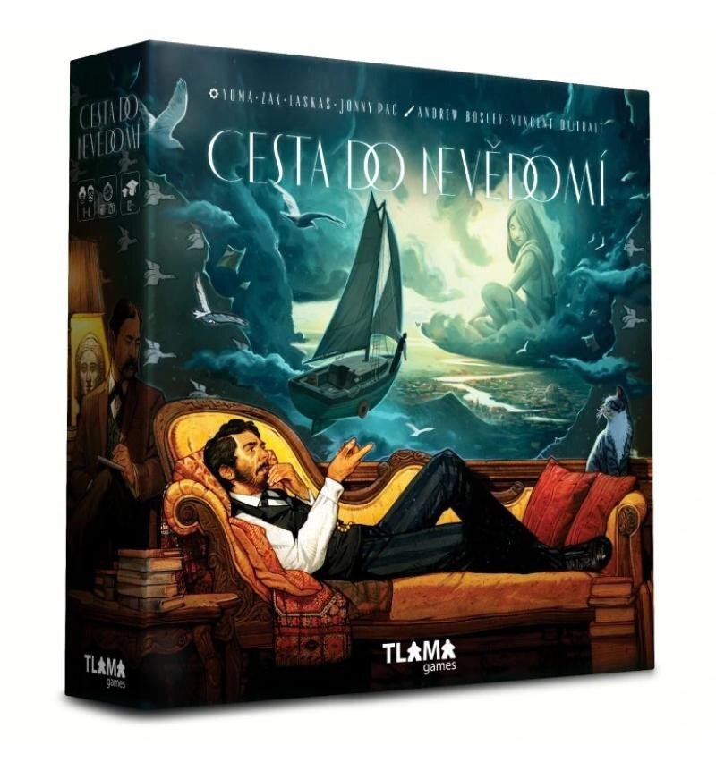 Na počátku 20. století přišel rakouský neurolog Sigmund Freud s revoluční teorií zvanou psychoanalýza neboli studium nevědomé mysli. Teorie se postupně ujala ve Freudově okolí a příznivci psychoanalýzy se každou středu scházeli u Freuda doma, aby diskutovali o psychologii a symbolice snů. Tato skupina - Středeční psychologická společnost - představovala počátek celosvětového psychoanalytického hnutí. Jako člen této společnosti máte za cíl formulovat nové terapeutické techniky, založit ordinaci, rozšířit si klientelu a stát se nejvýznamnějším Freudovým současníkem. Abyste toho dosáhli co nejlépe, musíte sdílet poznatky, diskutovat o nápadech s kolegy a publikovat teorie. A pokud budete chtít zůstat ve formě, budete potřebovat trochu kávy - vlastně spoustu kávy. Cesta do nevědomí je strategická eurohra s mechanikami worker placementa engine building, hned několika rondely a celou řadou kombinujících se efektů. Když jste na tahu, smíte umístit jeden nebo dva žetony nápadů na stůl Středeční společnosti a provést různé akce. Můžete získat nové poznámky na desku hráče, brát či vykládat karty výzkumu nebo se pohybovat po mapě Vídně. Umístění nápadů na stůl také rozhodne o pohybu vašeho kalamáře po rondelu, s jehož pomocí budete aktivovat řady nebo sloupce poznámek na své desce hráče. K léčení klientů a intepretací snů musíte pracovat se zásobou porozumění, kterým budete manipulovat na speciální desce. Postupně se propracujete přes sny s manifestním obsahem až k hlubokým snům s latentním obsahem. A vaše porozumění pomůže klientům dosáhnout katarze. Katarzi představuje odstranění průhledných vrstev melancholie z karet klientů a následné odemčení zvláštních schopností či bodování na konci hry. Jakmile je pověst vaší skupiny psychoanalytiků dostatečně vysoká, nastane konec hry a hráč s nejvyšším počtem bodů se stane vítězem. Hra je určena pro 1-4 hráče od 12 let. Pravidla jsou česky. Herní materiál je jazykově nezávislý. Obsah balení: 2 hlavní desky 4 desky hráčů 4 desky porozumění 60 destiček poznámek 9 destiček pojednání 7 destiček cílů lokací 4 desky ordinací 24 žetonů čtvrtí 20 žetonů bystrých nápadů 1 žeton začínajícího hráče 48 karet snů 24 karet klientů 4 karty ordinací 36 karet výzkumu 29 průhledných karet s vrstvou melancholie 1 krabička na vrstvy melancholie 4 figurky profesorů 1 figurka Freuda 4 kalamáře 24 žetonů nápadů 52 žetonů porozumění 5 ukazatelů pověsti 4 ukazatele bodů 4 ukazatele kávy 4 ukazatele krabiček ve tvaru srdce 8 ukazatelů terapie 1 pravidla 4 nápovědy hráčů Moduly: 1 figurka novináře 1 figurka ohňostroje 6 překryvných desek lokací Sólo: 16 karet stolu 9 desek poznámek 8 překryvných destiček klientů 1 překryvná destička kalamáře 1 směrovka 1 pravidla 2 přehledové karty