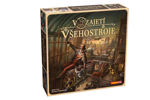 Koncem 19. století se nejlepší mozky lidstva spojily, aby vybudovaly utopické mechanické město. Triumf spojení vědy, techniky a páry pluje oblohou na obrovských plošinách. Veškerý chod létajícího města řídí Všehostroj, komplexní síť umělé inteligence určená k tomu, aby přinesla lidstvu blahobyt. Bohužel Všehostroj ve své umělé mysli došel k jiné představě o budoucnosti… V této hře „jeden proti všem“ se 1-3 odbojáři utkají se zdánlivě všemocným Všehostrojem a jeho armádou mechanických strážných. Jejich úkolem bude získat na svou stranu vlivné občany a vyvolat revoluci. V roli odbojářů musíte strategicky plánovat pohyb po městě, využívat speciální schopnosti hrdinů a odhalovat skryté identity obyvatel. Jako Všehostroj naopak předvídat další kroky odboje. Kdo zvítězí, hrdinové snažící se zachovat si lidství, či obří mechanický tyran? Počet hráčů: 1-4 Věk: 14+ Obsah balení: Město 1 ciferník 9 desek čtvrtí 30 žetonů ctihodných občanů 45 žetonů příslibů/povelů 21 karet městských událostí 1 dřevěný ukazatel pokroku* 9 žetonů čtvrtí* 17 karet městských událostí* Hrdinové 6 figurek hrdinů 6 karet hrdinů 54 karet přístupu 1 kostka napadení 1 kostka úniku 3 žetony vzpoury 12 karet misí* 14 žetonů misí* 9 přehledových karet Všehostroj 3 figurky nohsledů 3 žetony aktivace nohsledů 18 dřevěných figurek strážných 3 žetony zátahu 9 karet nařízení 9 figurek pomocných strážných* 9 karet nařízení* 13 karet pohybu nohsledů* 3 karty akcí nohsledů* 2 přehledové karty Pravidla hry Příručka * Tento herní materiál je určen pouze pro sólový a kooperativní režim.