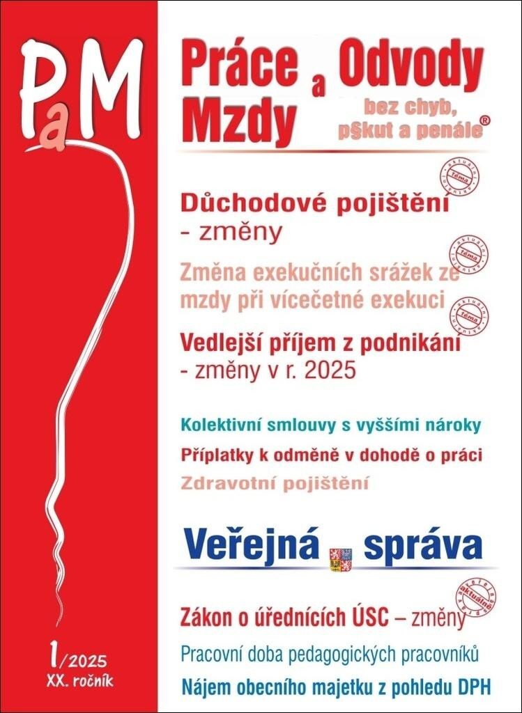 Změny v důchodovém pojištění - Ve Sbírce zákonů byly publikovány tři nařízení vlády, týkající se zvýšení důchodů v roce 2025. Výše základní výměry důchodu se stanoví s účinností od 1. ledna každého kalendářního roku ve výši 10 % průměrné mzdy, a to po zaokrouhlení na celé desetikoruny nahoru....