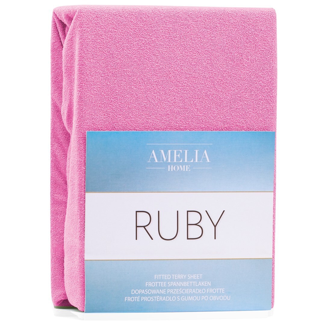 Froté prostěradlo s gumou AmeliaHome Ruby růžové, velikost 100-120x200+30