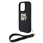 DKNY PU Leather Stack Logo Wrist Strap Zadní Kryt pro iPhone 16 Pro Max Black