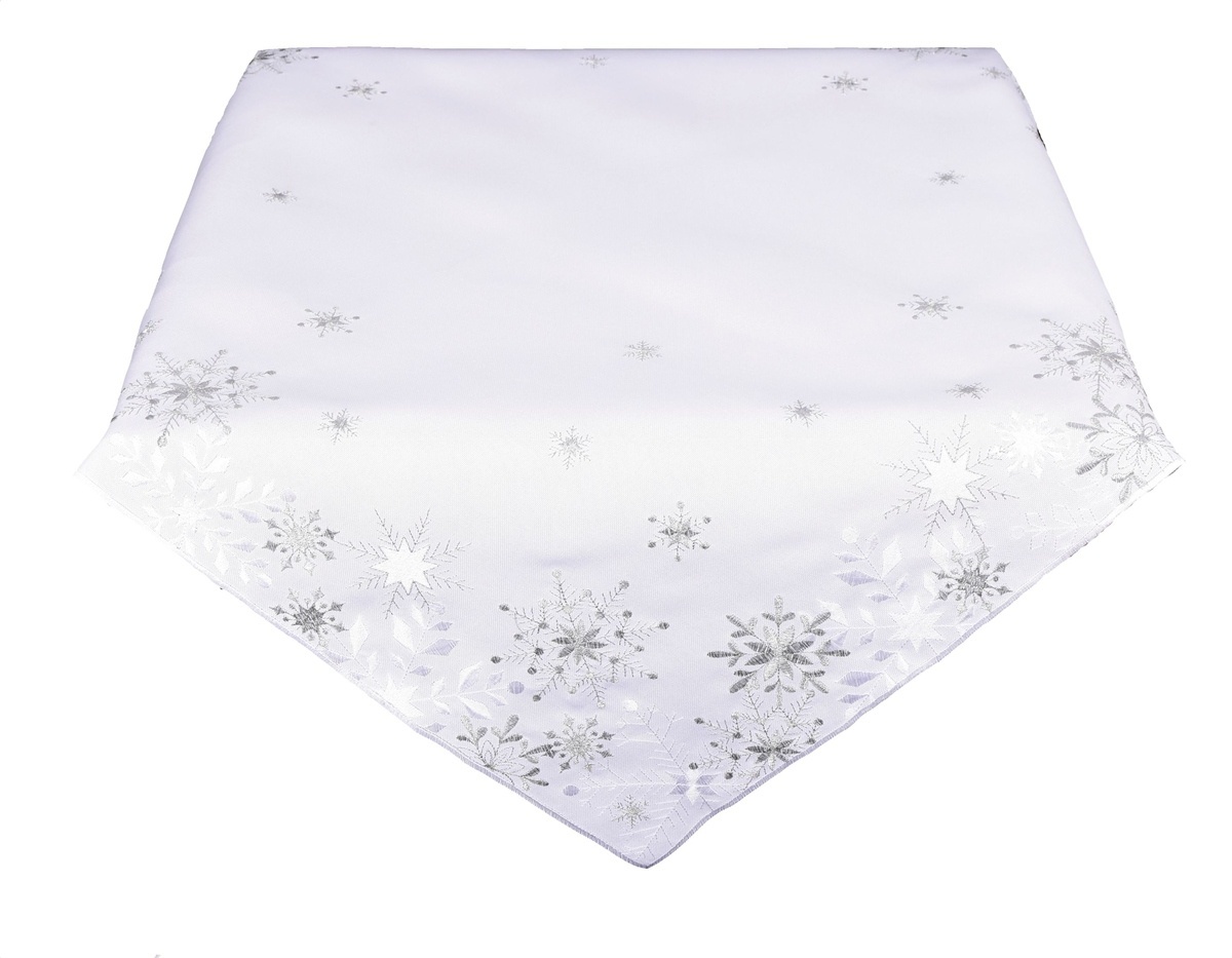Ubrusy jsou vyrobeny z kvalitní tkaniny, která dodává elegantní vzhled. Jemný motiv vloček přidává nádech luxusu, zatímco bílý lem podtrhuje jeho sofistikovaný design.