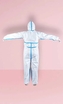 Elektrostatyczny kombinezon ochronny z kapturem, stanowiący barierę przed wirusami i bakteriami. .