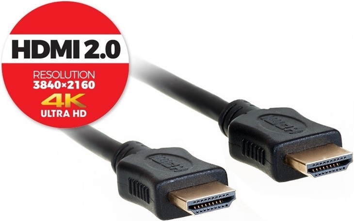 kabel HDMI 2.0, vhodný i pro 4K, High Speed + Ethernet, 18 Gbps, zlacené kontakty, několikanásobné stínění, délka 5 m