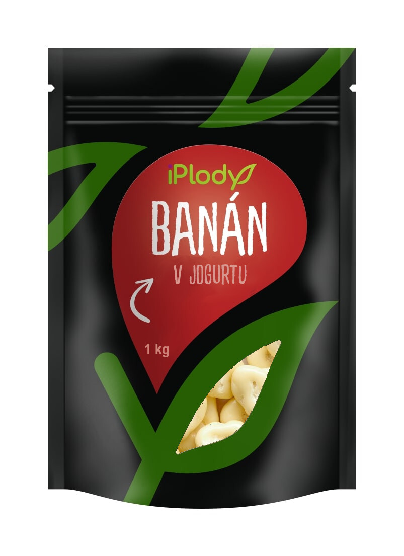 Složení: Banánové plátky sušené 41% - banán, kokosový olej, cukr, aroma. Jogurtová poleva 51% (+/- 5%) - cukr, hydrogenovaný rostlinný tuk (palmový), rostlinný olej (olej z ořechů Shea), sušené mléko odtučněné, sušená syrovátka, vanilkové aroma, jogurtové aroma. Leštící směs - tapiokový škrob, cukr, lešticí látka: šelak; kokosový olej, kyselina: kyselina citronová, konzervant: kyselina sorbová.