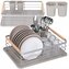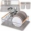 Sušička je vyrobena z pevné oceli, plastu a dřeva, což zaručuje dlouhou životnost a odolnost proti vlhkosti. Její příjemné barevné provedení v šedé a hnědé barvě se bude hodit do každé kuchyně. Velká kapacita sušičky vám umožní pohodlně uskladnit veškeré nádobí po mytí, zatímco pevný zásobník na vodu zabraňuje stékání vody na linku a usnadňuje údržbu.