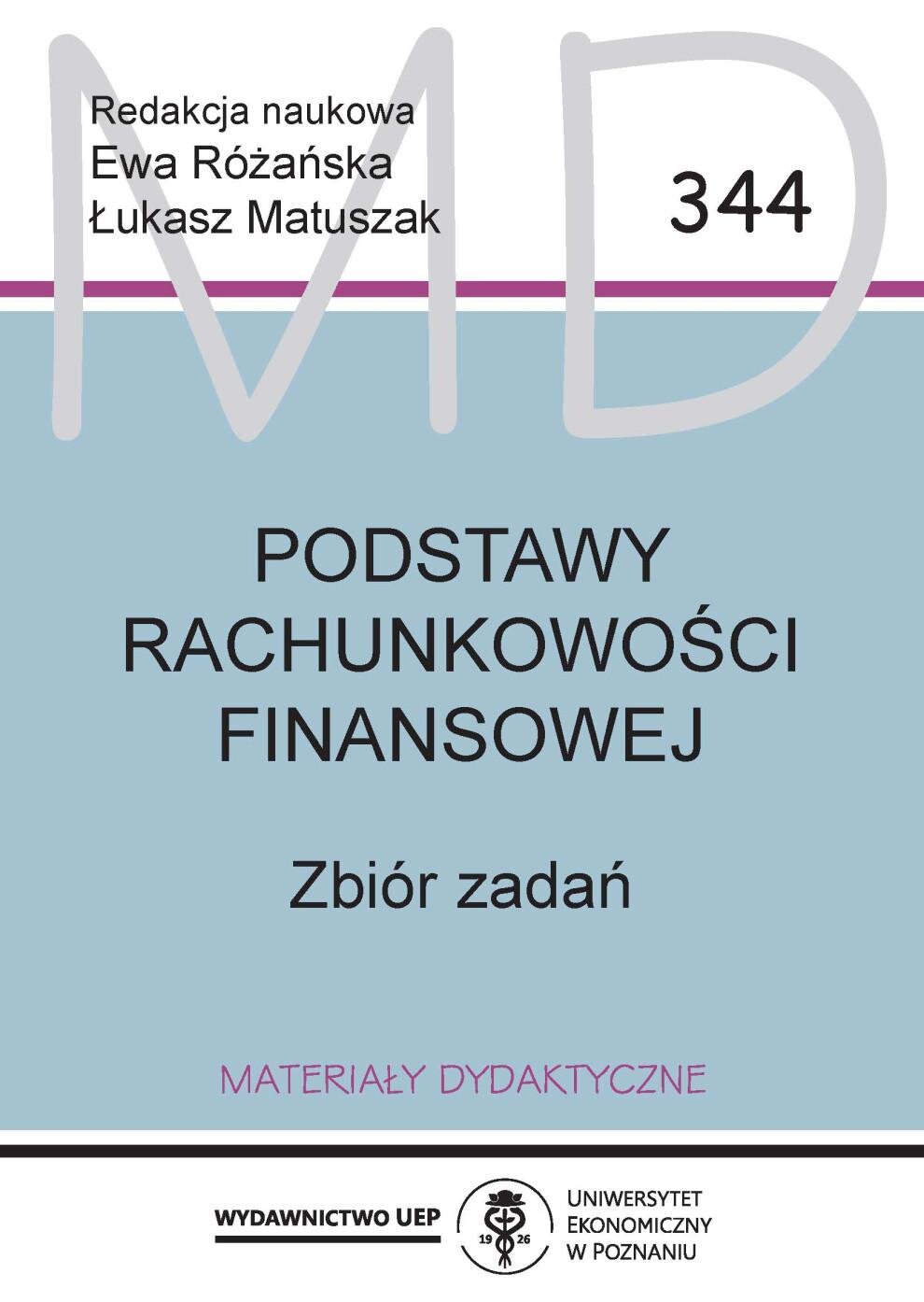 Podstawy rachunkowości finansowej. Zbiór zadań Praca zawiera różnorodne zadania przybliżające tematy objęte programem nauczania rachunkowości na kierunkach: finanse i rachunkowość biznesu, zarządzanie, gospodarka przestrzenna na Wydziale Zarządzania; polityka społeczna, finanse i rachunkowość,...
