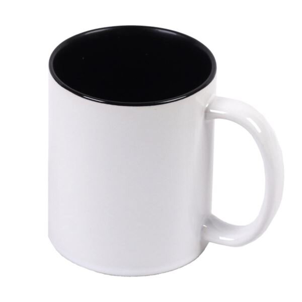 Hrnek pro potisk - 300 ml, bílý, černý vnitřek
