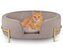 • Materiál: Odolný a pohodlný samet• Rozměry: 60,5 × 40,5 × 23,5 cm• Barva: Šedobéžová• Nosnost: Až 80 kg• Konstrukce: Vyvýšený pelíšek na zlatých nožičkách