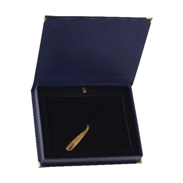etuje pro dřevěnou podložku 200x250 mm; horizontální otevírání - víko etuje je upevněno na jedné z jejích delších stran ; materiál: imitace kůže ; vyjímatelná sametová výplň pro použití jako stojan ; rozměr etuje: 290x235 mm ; barva modrá číst celé