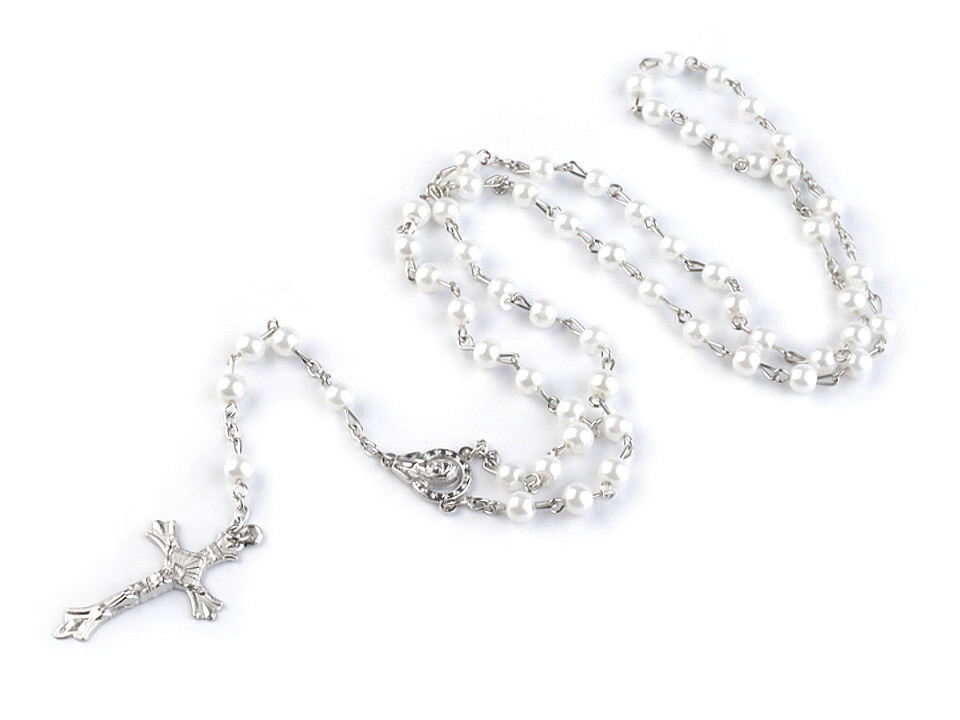 - Poutavý design: Detailní kovový křížek dodává růženci elegantní a tradiční vzhled.