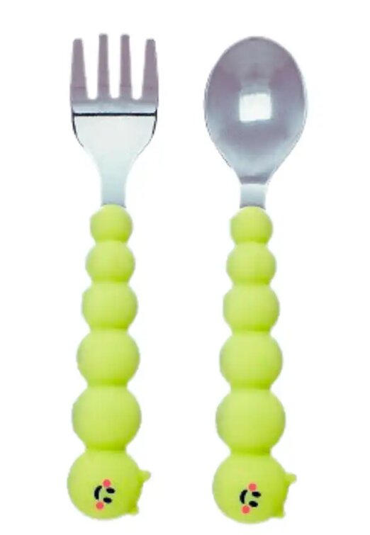 - Příbor sestává z lžičky a vidličky s rukojetí ve tvaru housenky.
