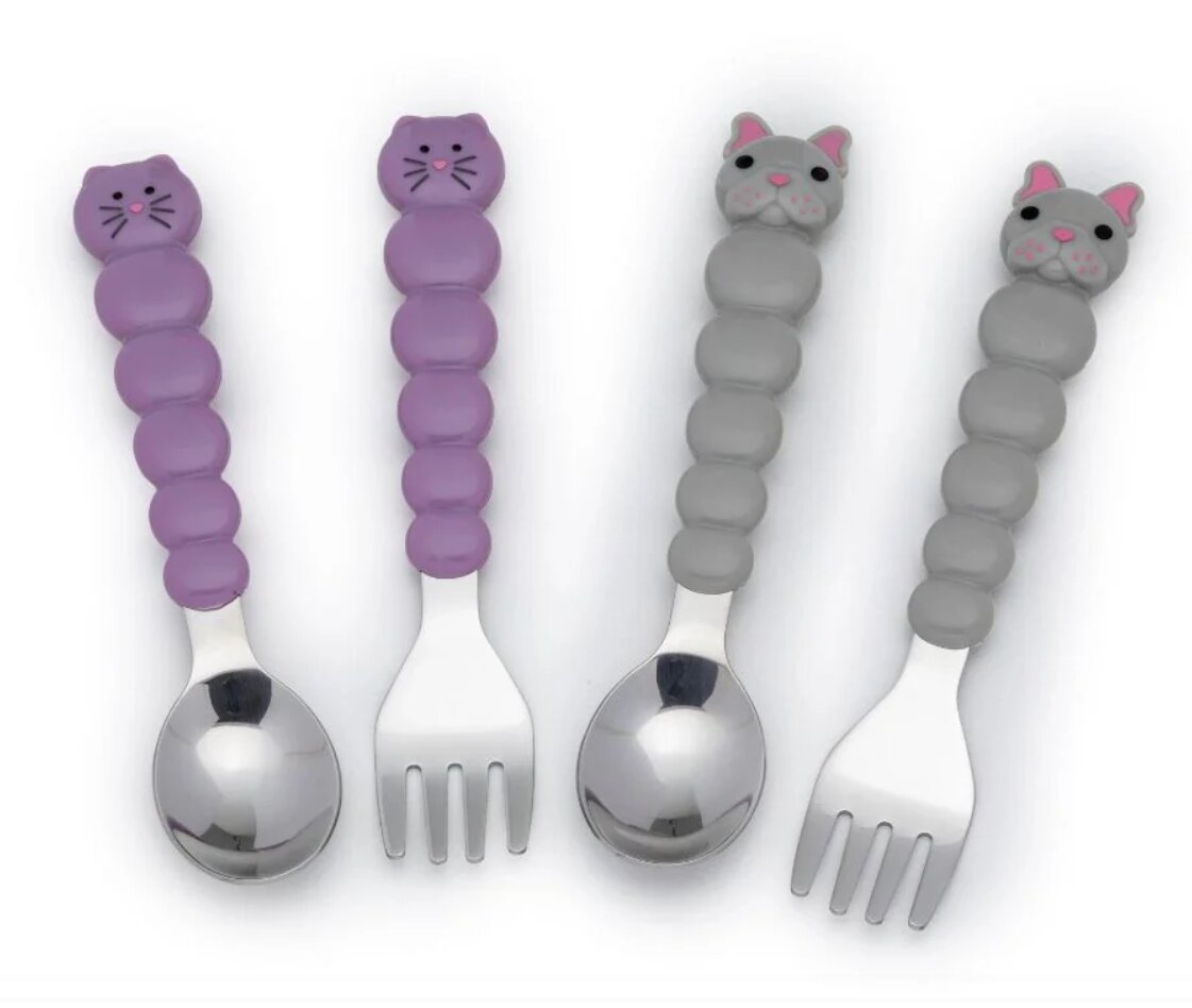 Batole, které se učí jíst samo? To znamená spoustu nepořádku, ale také spoustu zábavy! Dětský příbor Melii s motivy buldočka a kočky přináší nejen hravý design, ale také pomáhá rozvíjet jemnou motoriku a podporuje samostatné stolování.
