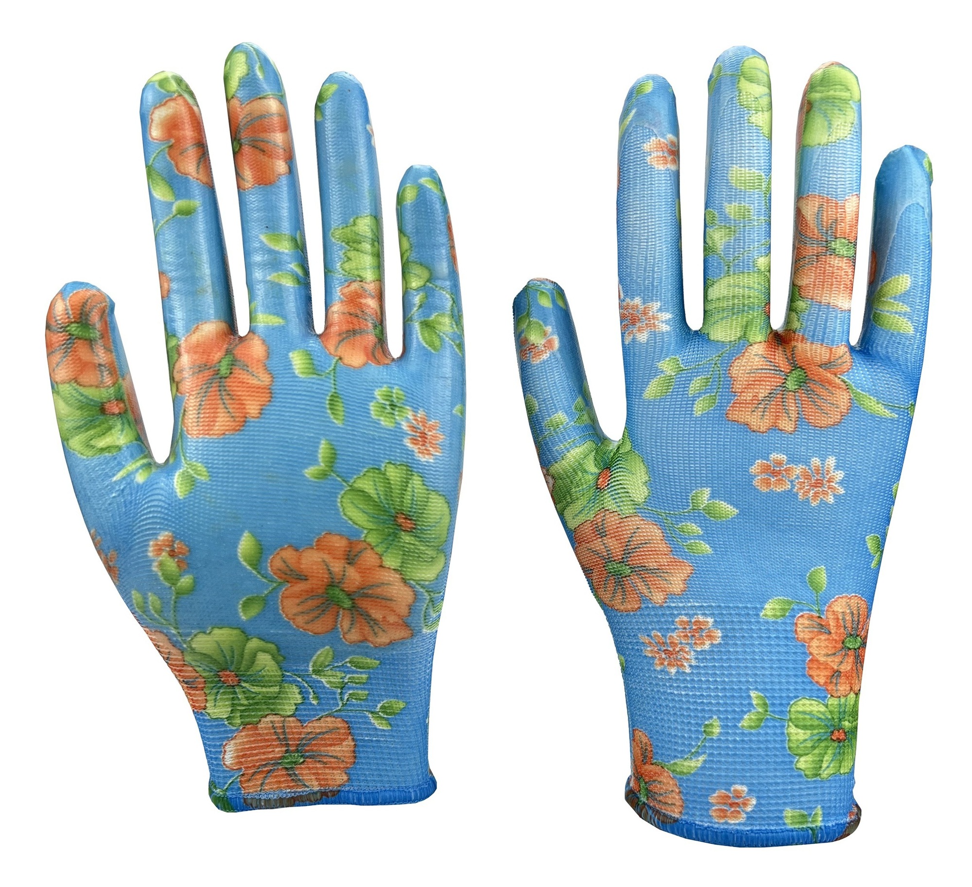 Zahradní rukavice NITRILE FLOWERS poskytují spolehlivou ochranu rukou při zahradních pracích, jako je výsadba, pletí nebo manipulace s nářadím.