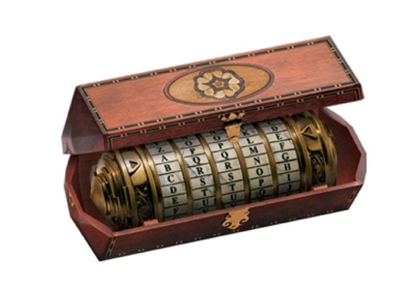 Funkční replika hlavolamu Kryptex v dřevěném pouzdře. Rozměry: 14 x 4,5 cm číst celé