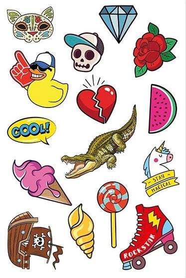 Dočasná tetování jsou nejzábavnějším a nejbezpečnějším způsobem, jak si na kůži namalovat emotikony, zvířata, piráty a mnoho dalších kreseb. V nabídce je rozšířeno 15 různých motivů, takže můžete každý den nosit jiný design. Dodává se v jednoduchém a bezpečném formátu pro aplikaci. Dočasná tetování jsou na vodní bázi, takže je lze snadno odstranit vodou a mýdlem, a jsou dermatologicky testována. Neobsahuje parabeny a je bez všech hlavních alergenů.