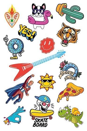 Dočasná tetování jsou nejzábavnějším a nejbezpečnějším způsobem, jak si na kůži namalovat emotikony, zvířata, piráty a mnoho dalších kreseb. V nabídce je rozšířeno 15 různých motivů, takže můžete každý den nosit jiný design. Dodává se v jednoduchém a bezpečném formátu pro aplikaci. Dočasná tetování jsou na vodní bázi, takže je lze snadno odstranit vodou a mýdlem, a jsou dermatologicky testována. Neobsahuje parabeny a je bez všech hlavních alergenů.