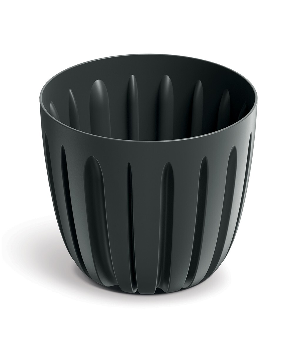 Malý květináč WARIO je řada květináčů, která se vyznačuje žebrovaným hladkým povrchem a jsou určeny k vnitřnímu použití. V barvě uhelná.