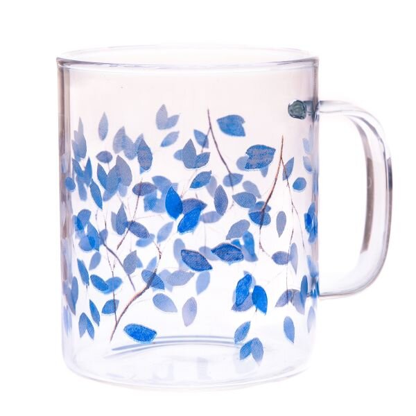 Skleněný hrnek - modré květy, 410ml, 0/48