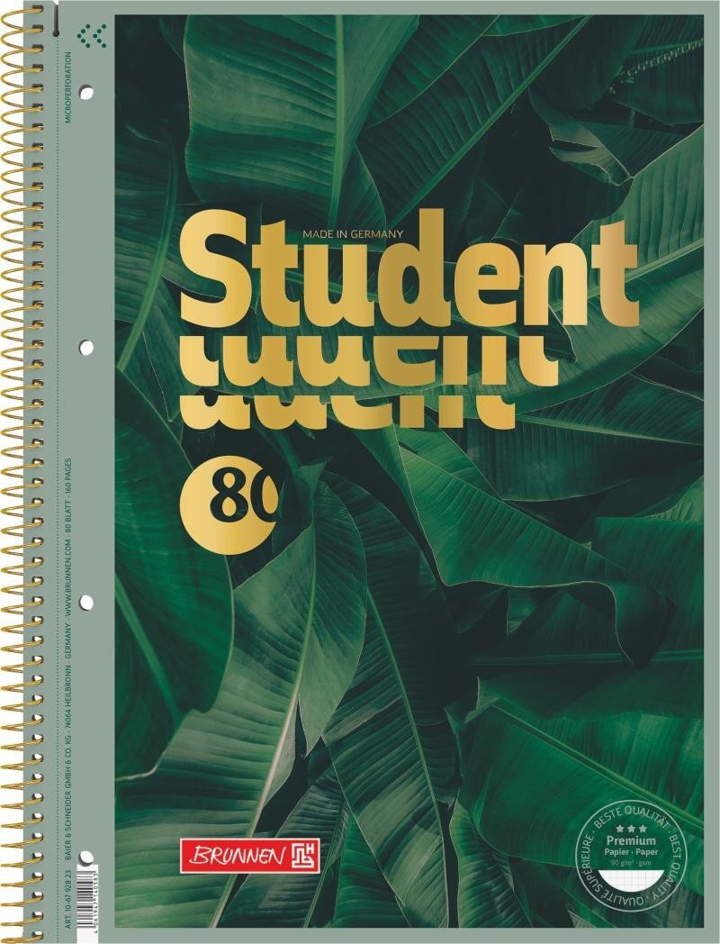 Sešit obsahuje 80 listů, 160 stran, kvalitní papír o gramáži 90 g/m2, který se nepropisuje. Mikroperforace pro snadné vytržení listu, děrovaný pro možnost založení do šanonu. Desky s motivem džungle se zlatou ražbou. Vyrobeno v Německu. číst celé