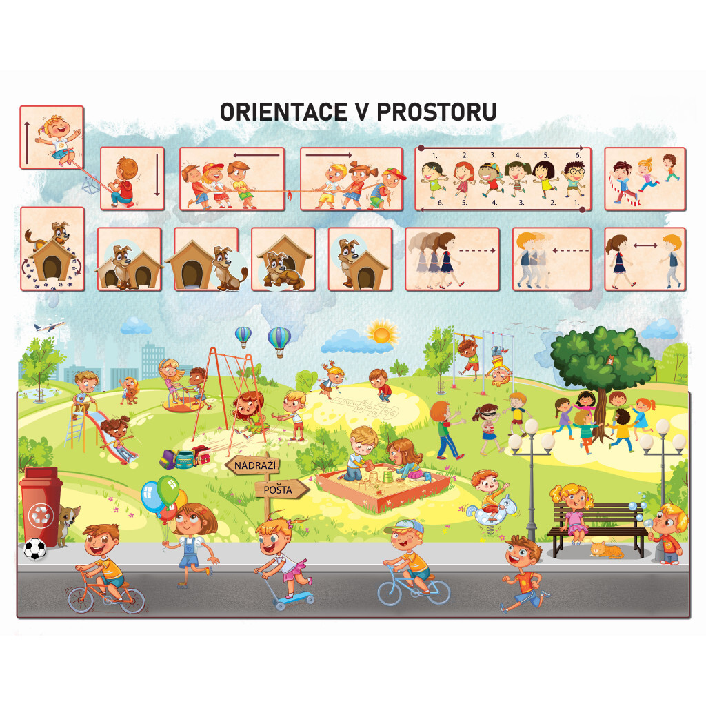 Obsahuje: jeden závěsný naučný magnetický obraz Orientace v prostoru o rozměrech 100 x 80 cm (bez lišt).