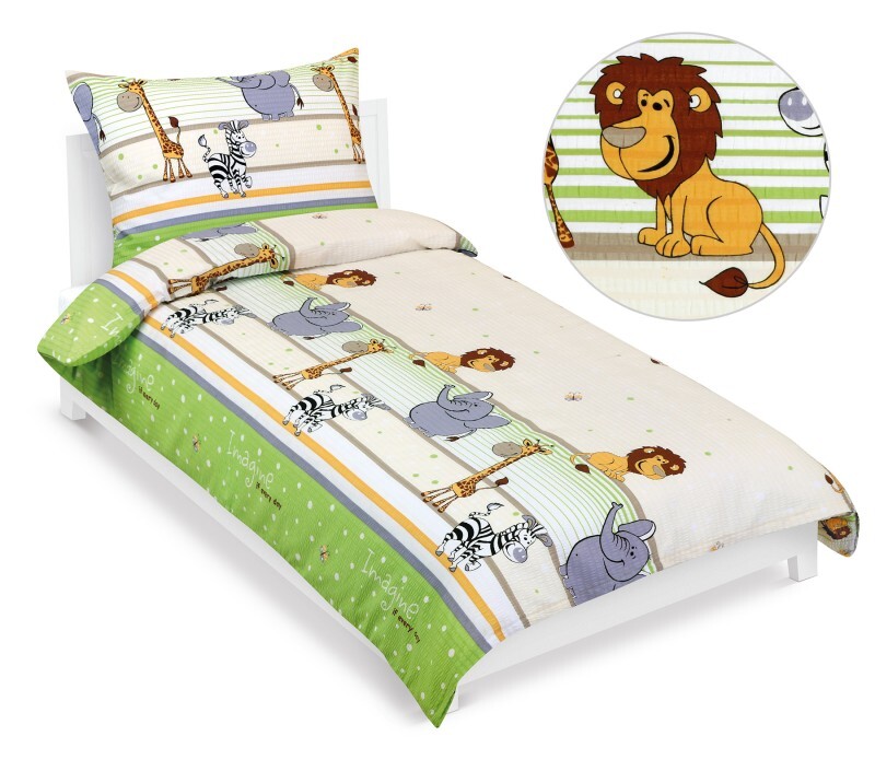 Povlečení krepové - Zelená,Béžová,Bílá - 140x200, 70x90 cm