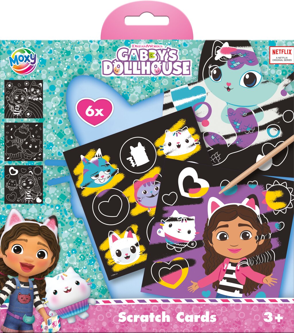 - Obsahuje 6 vyškrabávacích obrázků inspirovaných Gábinčiným kouzelným domečkem.