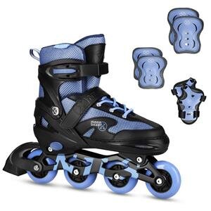 NA0189 MODRÁ VEL.M(35-38) SADA KOLEČKOVÝCH BRUSLÍ A CHRÁNIČŮ NILS EXTREME