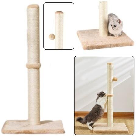 Drapak dla Kota - Słupek do Drapania Wieża 80 cm x 40 cm, Jasnobrązowy Komfort i przyjemność w dotyku Wykonany z wyjątkowo miłego w dotyku materiału, który zapewnia kociej łapce czułość i komfort podczas codziennego użytkowania. Wytrzymałość na lata Drapak został wykonany z trwałych i odpornych na zniszczenia materiałów, dzięki czemu wytrzyma intensywne drapanie przez długi czas. Zabawa i radość Na szczycie słupka zamontowany jest pompon do zabawy, który zapewni Twojemu kotu dodatkową rozrywkę. Naturalne i bezpieczne materiały Słupki są owinięte naturalnym sznurkiem sizalowym, który jest twardy, wytrzymały i w pełni bezpieczny dla kota. SPECYFIKACJA: Wymiary: Podstawa 40 x 40 cm, wysokość słupka 80 cm Materiał: Miękka tkanina + sizalowy sznurek Kolor: Jasnobrązowy Dodatki: Pompon na szczycie drapaka ZAWARTOŚĆ ZESTAWU: Drapak słupkowy Pompon do zabawy DODATKOWE ATUTY: Elegancki i nowoczesny design - pasuje do każdego wnętrza Bezpieczny dla kota - wykonany z nietoksycznych, naturalnych materiałów Łatwy w montażu - szybkie i proste składanie