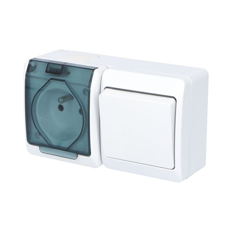 GALATEA 5327-11 IP44 Přepínač střídavý č.6 + zásuvka 2P+PE (bílá / průhledné víčko).