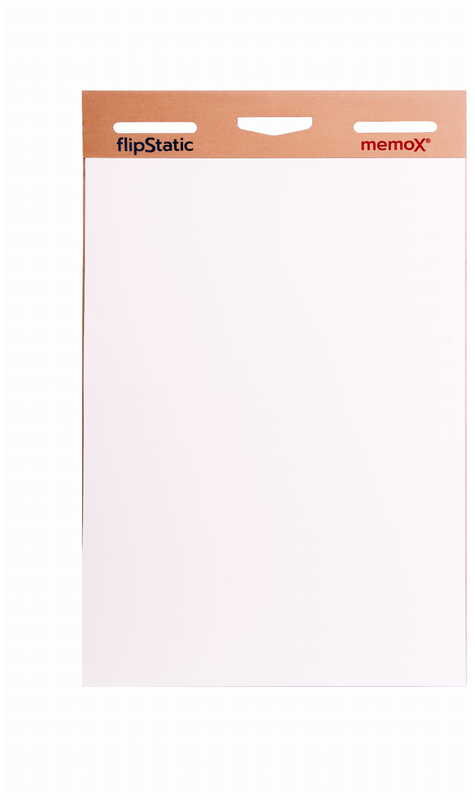 FlipStatic - flipchart z 25 elektrostatycznymi arkuszami w rozmiarze 49x69cm. Nowoczesny sposób notowania z możliwością przyklejania zapisanych arkuszy na dowolnej powierzchni.