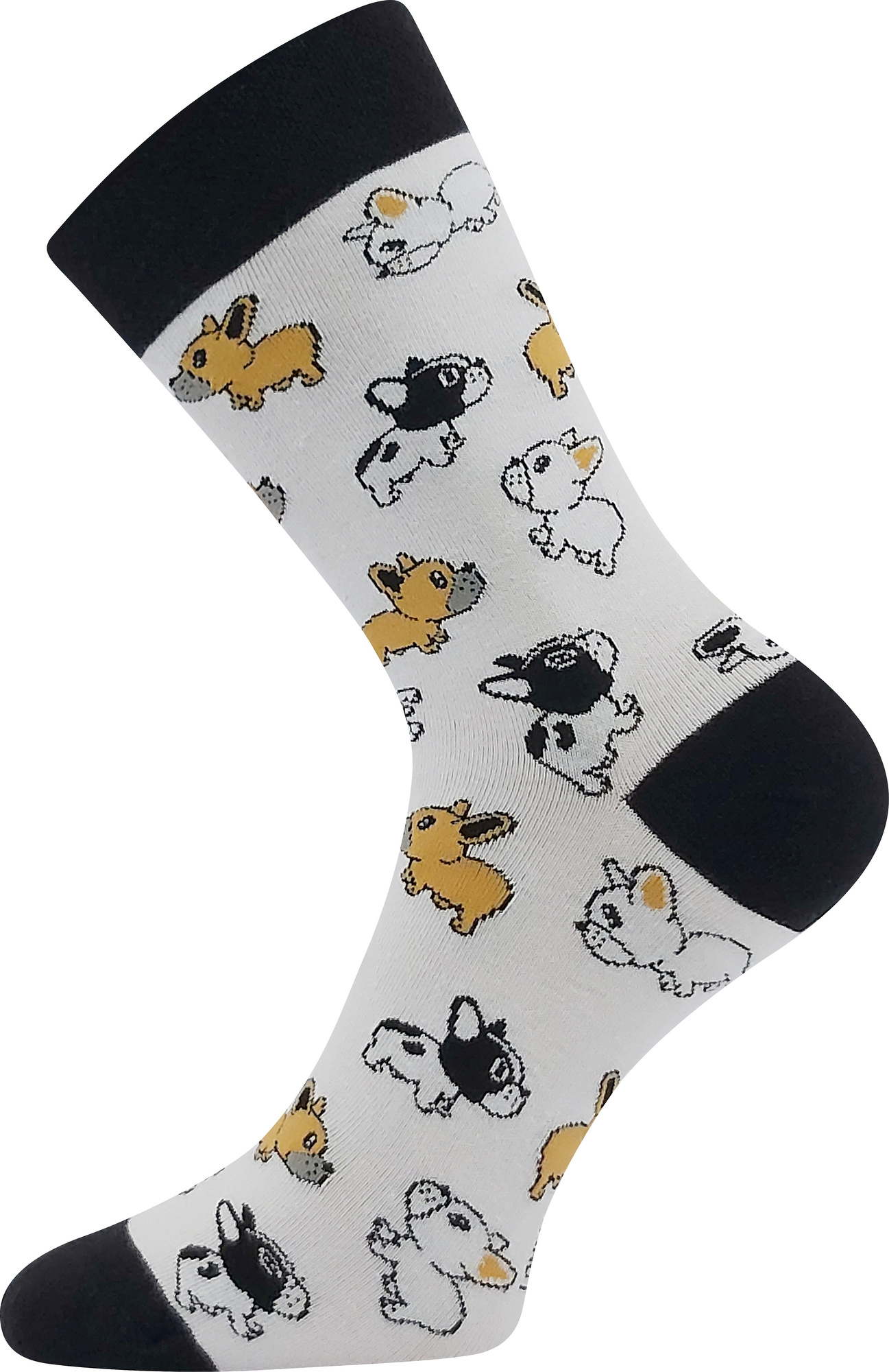 Obrázkové společenské ponožky Lonka® DEVIVE jsou módní ponožky špičkové kvality. Úplet je pletený na 200 jehlových strojích, je velmi jemný a hladký, takže každý detail obrázku je ostrý. Ponožky mají špičku spojenou plochým řetízkovým švem, který vůbec necítíte a nehrozí, že ponožka bude tlačit. Ponožky mají navíc volný nestahující pique lem. Vysoce kvalitní česaná bavlněná příze s podílem elastanu dobře odvádí vlhkost, je příjemná na pokožce perfektně sedí na noze. Crazy oblekové ponožky nejen pro pány oživí váš outfit, ať už nosíte oblek nebo džíny, budete se v nich cítit skvěle po celý den!