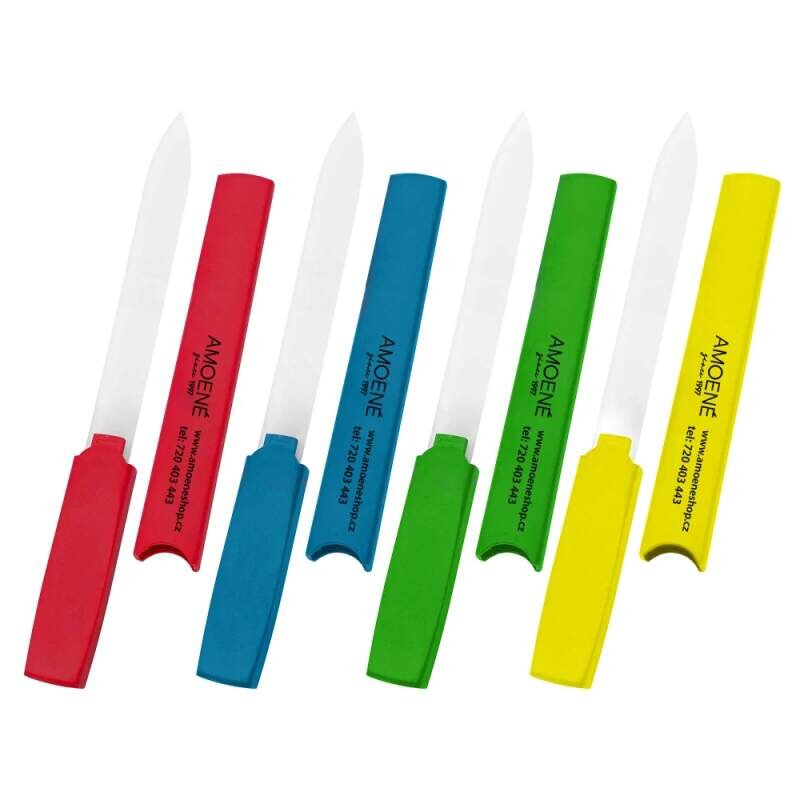 Skleněný pilník české výroby s potiskem Amoené s.r.o. je oboustranný produkt v pevném obalu. Tím je zachována vyšší odolnost proti zlomení. Délka výrobku včetně obalu je 160 mm, tloušťka 2mm. Pilník je vhodný pro profesionální i domácí použití. Je skvělým pomocník pro úpravu nehtů a geniálním dárkem pro všechny věkové skupiny obyvatel. Vyzkoušejte českou kvalitu za příjemnou cenu a vyberte si z našich barevných kombinací.