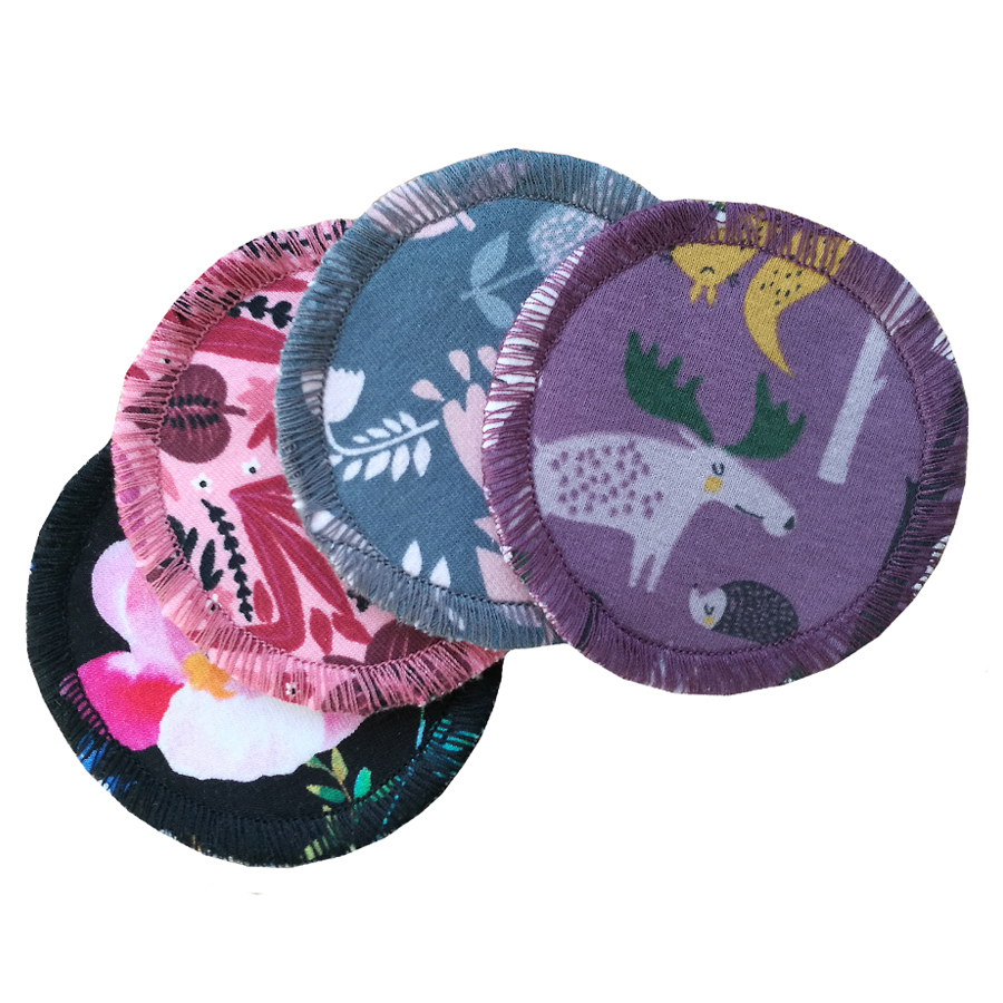 Materiál: 95 % bavlna, 5 % elastan; 80 % bavlna 20 % polyesterZ jedné strany je dotyková vrstva barevný úplet (95 % bavlna, 5 % elastan), z druhé 100% bavlna. Uvnitř tamponku je polyesterová mřížka, která zajišťuje, že se tamponky nesráží.