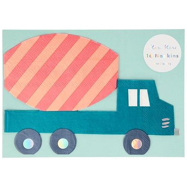 Originální ubrousky ve tvaru náklaďáku od zn. Meri Meri. Vaše dítě bude z ubrousků nadšené! Ubrousky jsou papírové, v detailech s efektem holografické folie. Vyrobeno eko papíru. Obsah balení 16 ks. 18x 12 cm ve složeném stavu