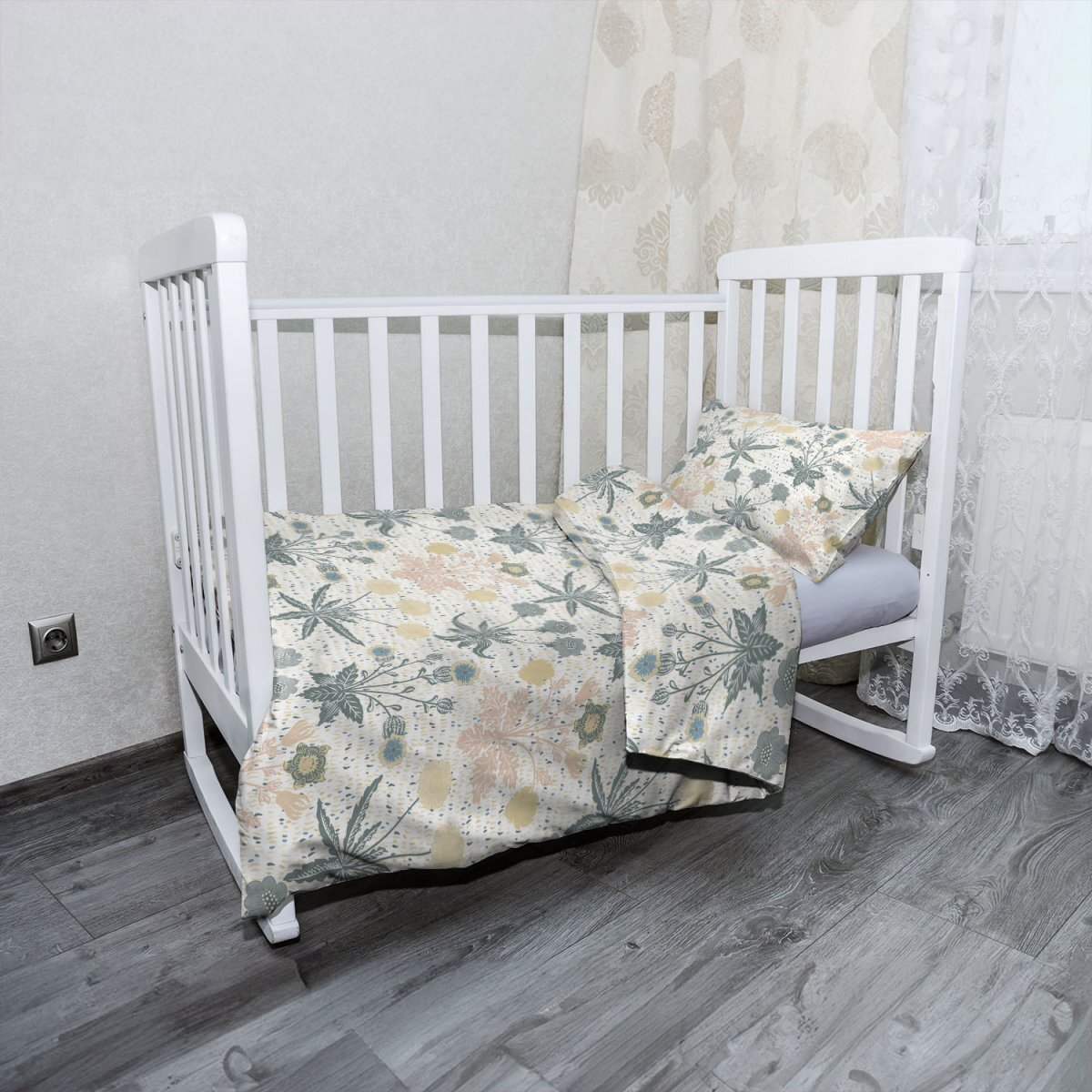 Dětské povlečení do postýlky Šedé květiny: 120x90 / 40x60
