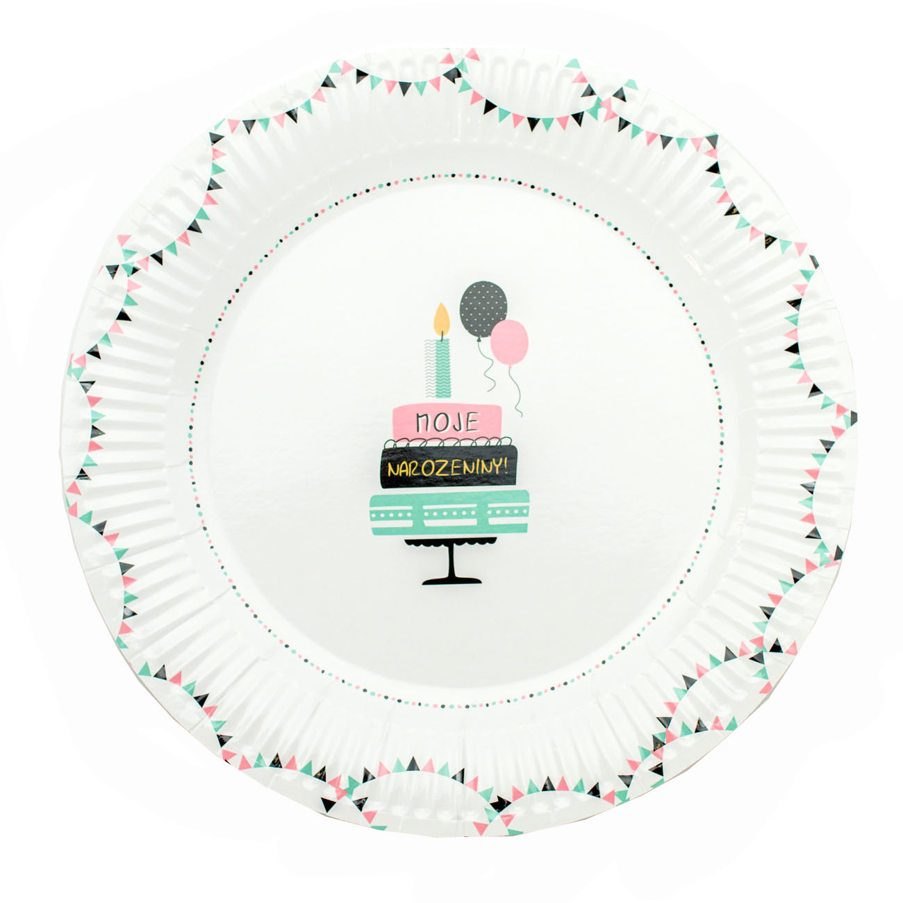 Papírové talíře s narozeninovým motivem a dortem by na vaší oslavě neměly chybět.