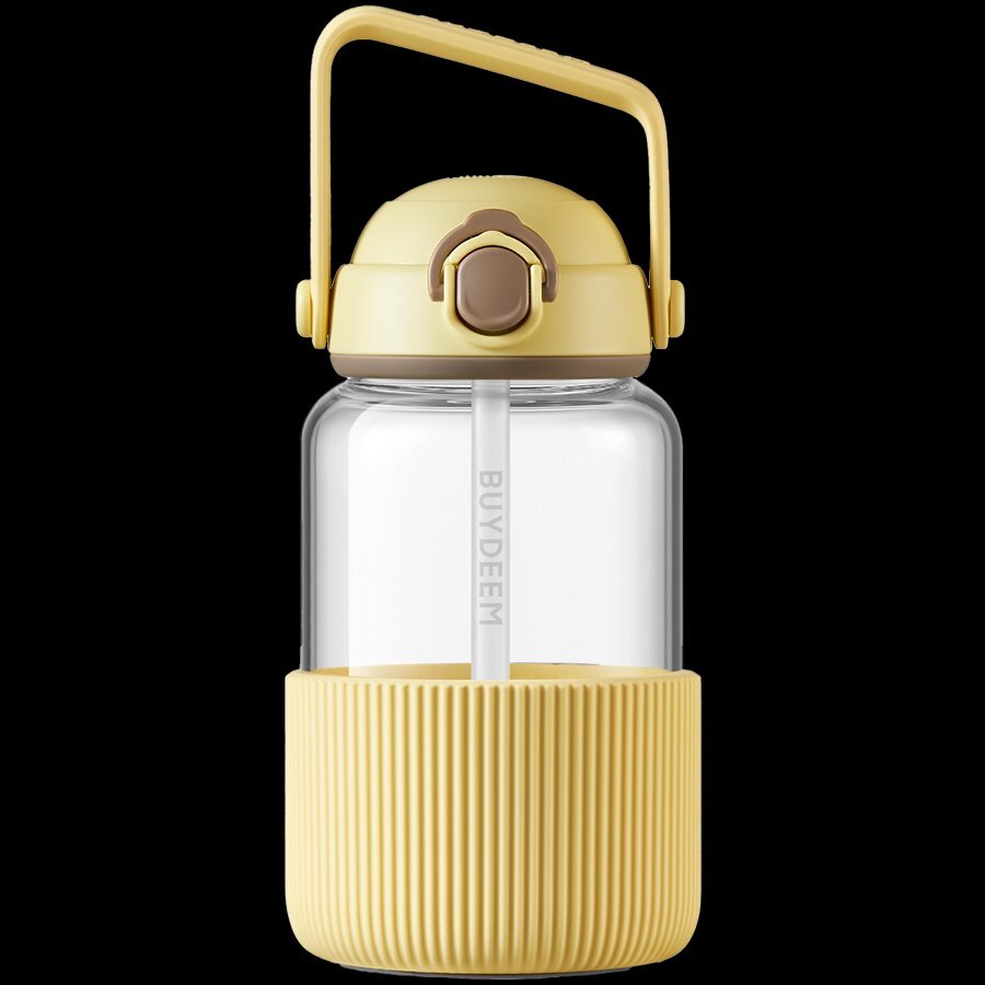 BUYDEEM skleněná láhev DG710-MY - žlutá, s brčkem, borosilikátové sklo