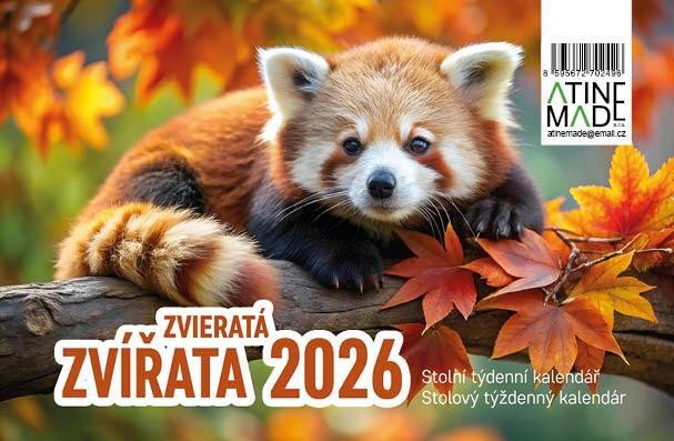 Kalendář 2026 Zvířata, stolní, týdenní, 15 x 22,5 cm