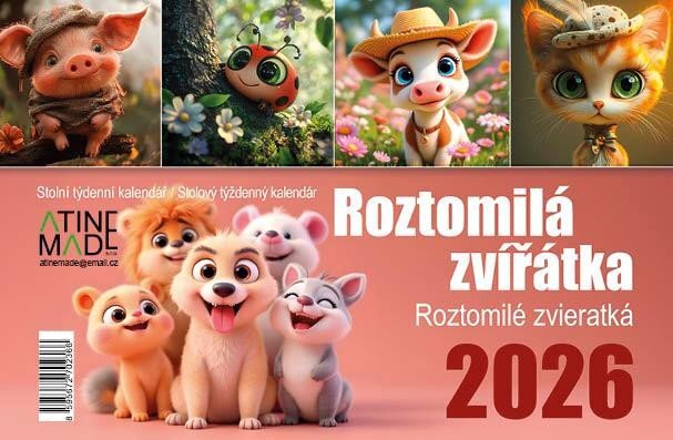 Kalendář 2026 Roztomilá zvířátka, stolní, týdenní, 15 x 22,5 cm