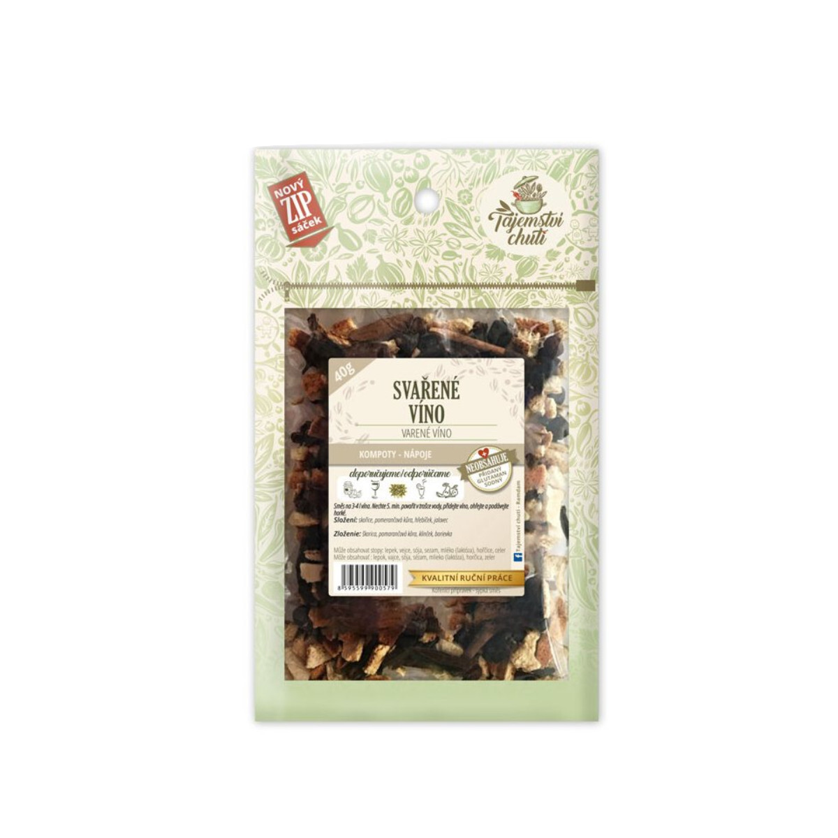 Složení: skořice, pomerančová kůra, hřebíček, jalovec