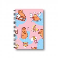 PENMATE Brulion A5 w twardej oprawie w spirali 80 kartek w kratkę T 0121 Kapibara Food folia mat nierysująca číst celé
