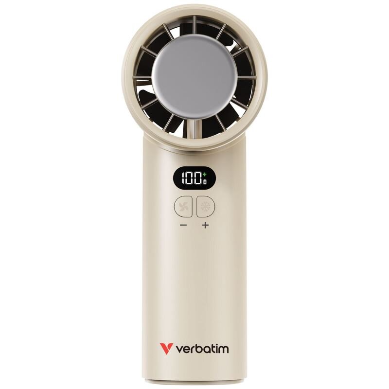 Verbatim Cool’n’Go IceTouch - Osvěžení nové generace - kombinace proudění vzduchu a aktivního chlazení v kompaktním provedení.Cool’n’Go IceTouch přináší maximální osvěžení díky spojení klasického ventilátoru s integrovanou aktivní chladicí plochou na zadní straně. Je ideálním společníkem na cestách, v kanceláři, při dojíždění nebo při venkovních aktivitách. Ovládání probíhá pomocí přehledného LED displeje, který zobrazuje úroveň větru (v procentech) i aktuální stav baterie.Vestavěná Li-ion baterie s kapacitou 3600 mAh poskytuje dlouhou výdrž a napájení přes USB-C konektor je pohodlné pro každodenní použití. Kompaktní rozměry a nízká hmotnost usnadňují přenášení i skladování.